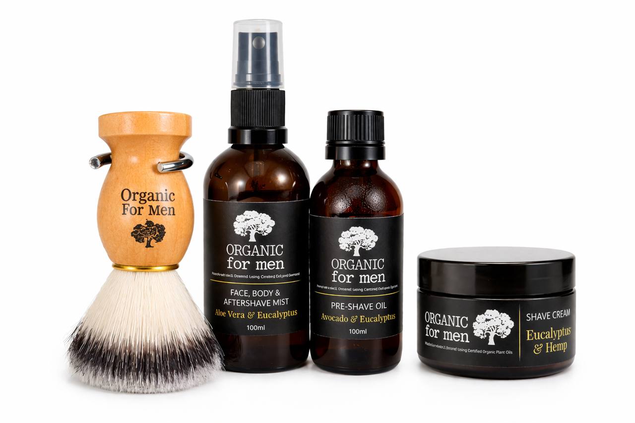 The Complete Hydrating Shave Set is a premium men’s shaving kit designed to deliver a smooth, close, and irritation-free shave using natural, plant-based ingredients.